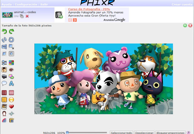 Edición de imágenes sencillas en línea con la herramienta de libre acceso y uso  “es.phixr”.